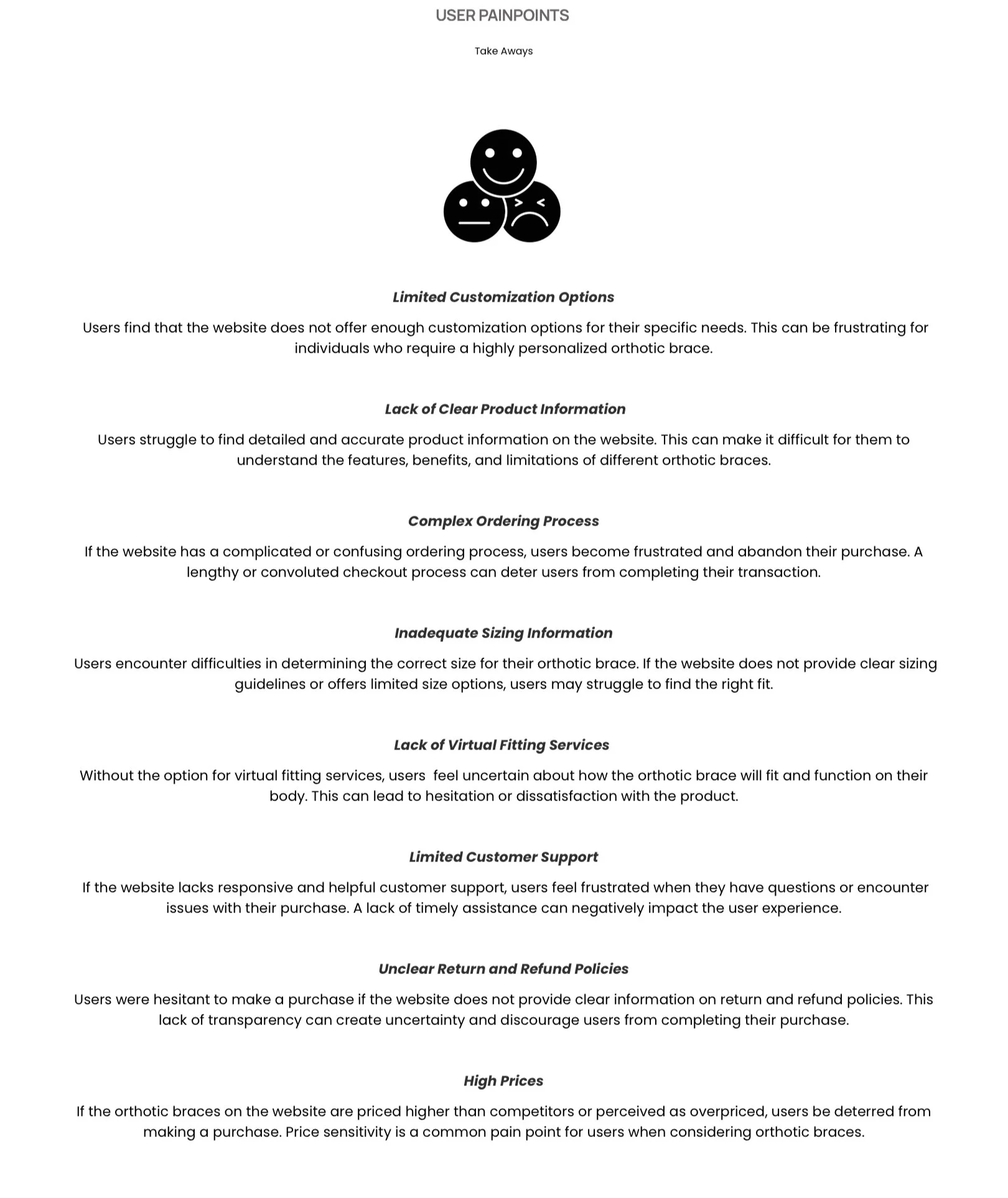 Users felt frustrated with the inconvenience of traditional orthotic services, such as long wait times and multiple visits.